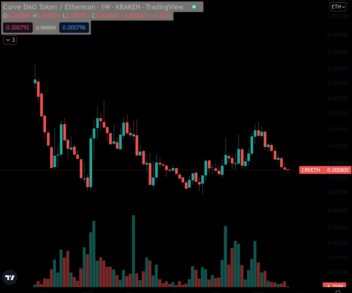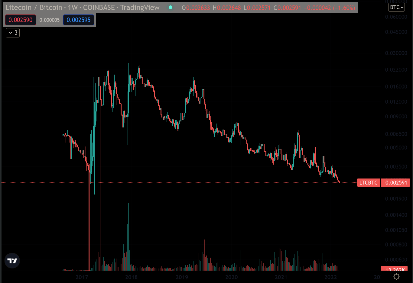 - DOGE/BTC, so what? I made a mistake? what are you gonna do about it huh? Doge has historically performed pretty well against BTC, moving mostly sideways with some spikes in specific moments, whenever it gets 'hot again'. Don't be deceived by this chart though, the investment is alright if we consider its historical performance, but the token is a meme, it has infinite supply and there's like 50 wallets that control the overwhelming majority of the supply. "But Daniel you could also say that about BTC!!", then buy DOGE man, it's OK, I also think the lil dog is kinda cute too, good luck trying to catch those spikes though!