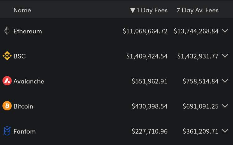 Fees paid for using blockchains: cryptofees.info