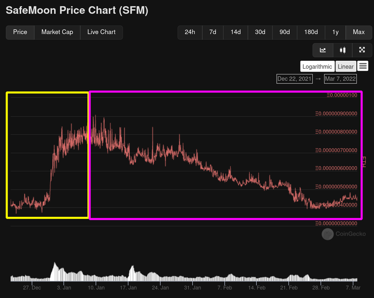Let's look at some example tokenomics, outline strenghts and weaknesses and perhaps consider some possible future changes to the tokenomics or future mechanics to be introduced that could possibly remedy poor price action and performance vs ETH or BTC.
