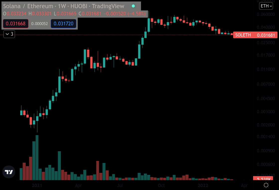 SOL/ETH: Holding SOL (Solana's native token) has proven to be an excellent investment as opposed to holding ETH. There's several reasons behind this incredible growth: