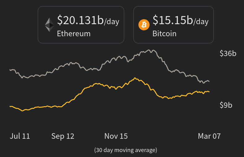 Value settled per blockchain (BTC and ETH): money-movers.info