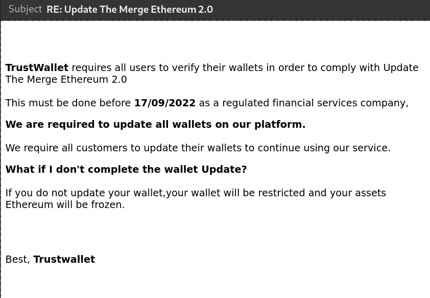 Off-chain scams are those that the victim doesn't directly find on a block explorer, on their wallet or any other piece of software that interfaces or queries blockchain data. Meaning that if I was a victim of one of these scams, I wouldn't be directly interacting with something on the blockchain, but rather I would give off some critical information, use some vulnerable piece of software, use some spoofed website or grant access to important permissions which would lead to me being scammed, sending out funds unintendedly, or granting access for someone to move funds on my behalf (a token approval). This is the most common type of scam and the one you will encounter the most in the wild or directly on your email inbox or direct messages.